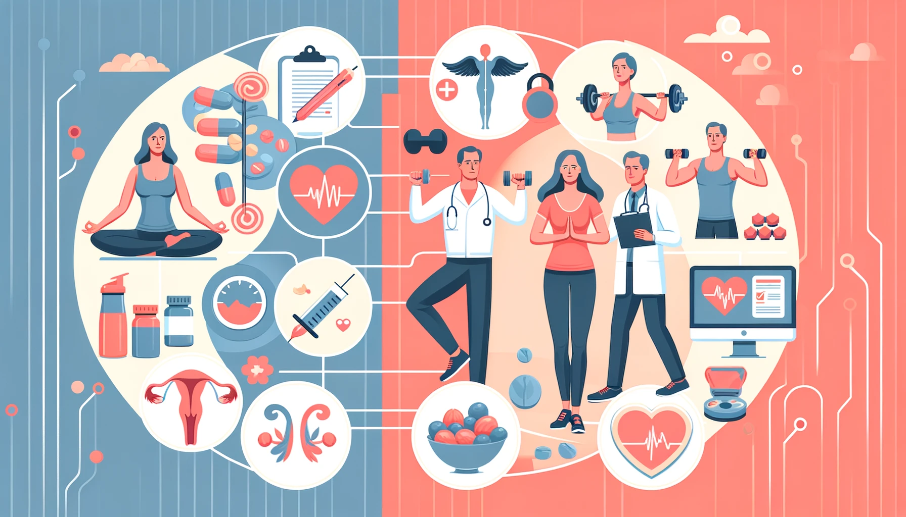 | 호르몬 보충 요법 | 테스토스테론 보충 요법을 통해 호르몬 수치를 조절합니다. | 에스트로겐 보충 요법을 통해 호르몬 수치를 조절합니다. |
