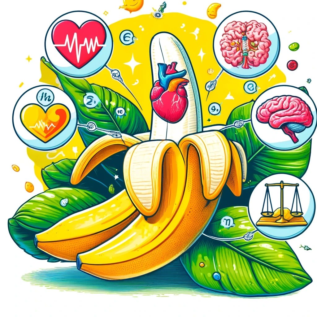 - 바나나는 포타슘이 풍부하여 혈압을 낮추는 데 도움이 됩니다. 포타슘은 체내 나트륨 수치를 조절하여 혈압 상승을 억제하는 역할을 합니다. 또한, 바나나에는 식이섬유가 포함되어 있어 콜레스테롤 수치를 낮추고 심혈관 질환의 위험을 감소시킵니다.