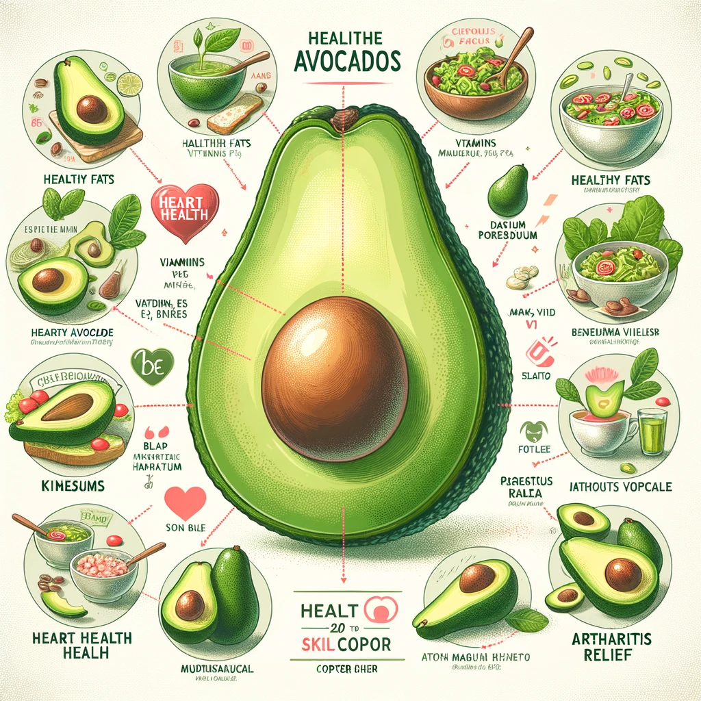 - 심장병 예방: 아보카도에 포함된 단일 불포화 지방산과 식이섬유는 나쁜 콜레스테롤 수치를 낮추고, 혈압을 조절하며, 염증을 줄이는 데 도움을 줍니다. 이는 심장병의 위험을 감소시킵니다.